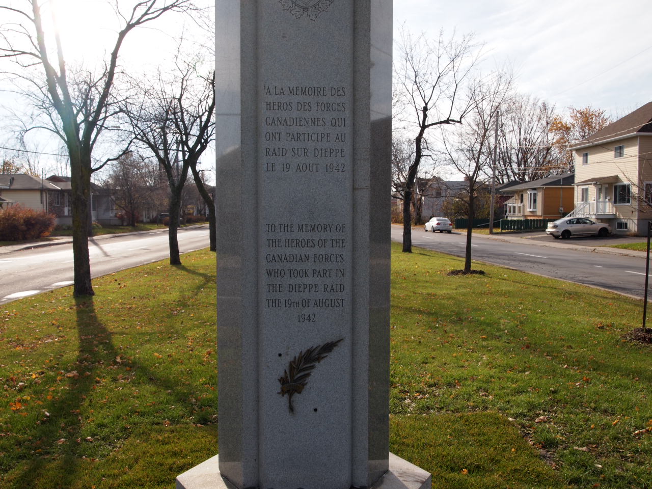 TO THE MEMORY OF THE HEROES OF THE CANADIAN FORCES WHO TOOK PART IN THE DIEPPE RAID OF THE 19TH OF AUGUST 1942.