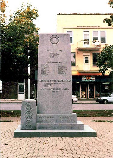 La ville de Drummondville, ses citoyens et la filiale no 51 de la Légion royale canadienne ont érigé ce monument à la mémoire de ceux des leurs qui sont tombés au cours de la Première et de la Seconde Guerres mondiales, de la guerre de Corée et des opérations de maintien de la paix.