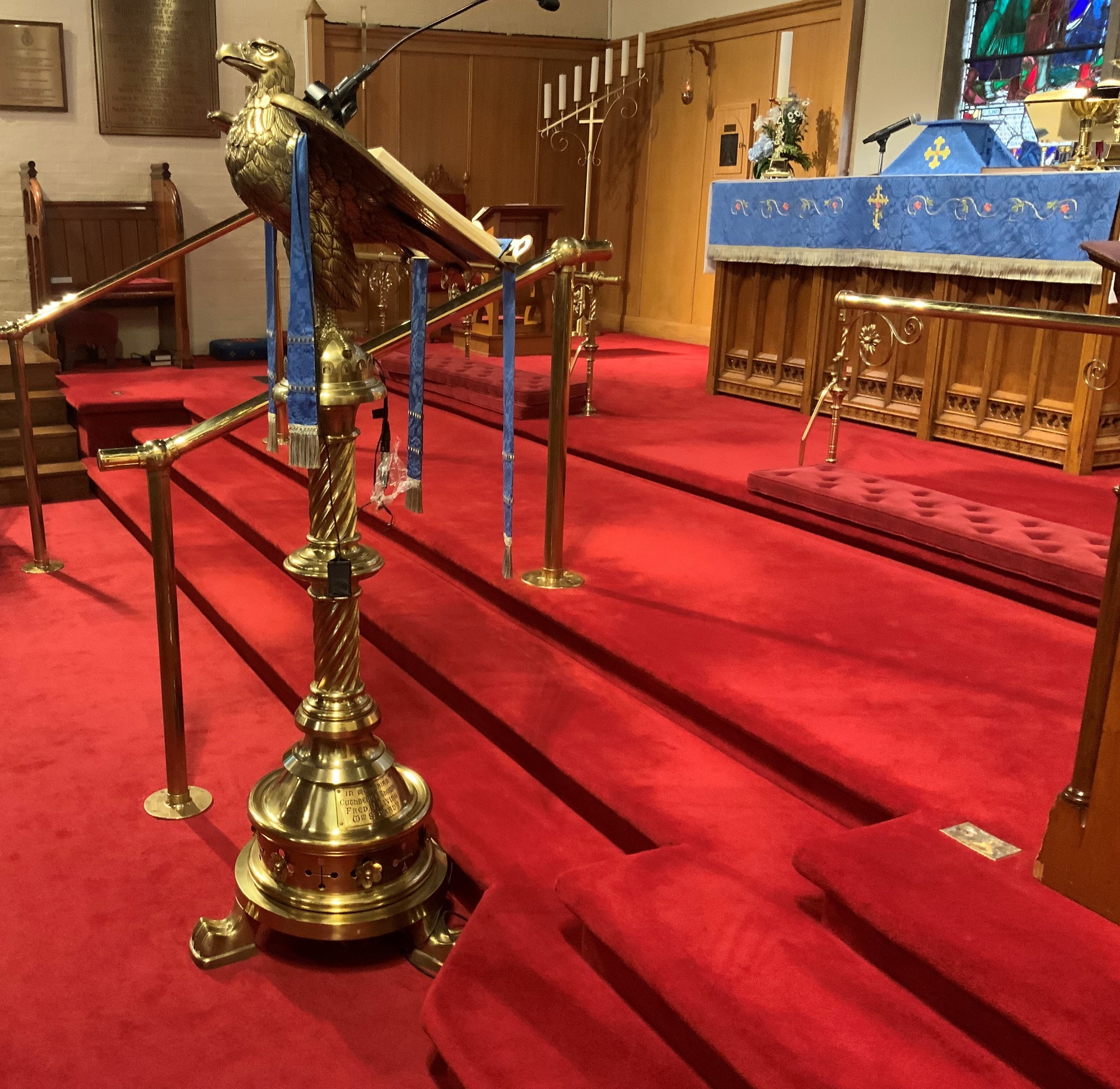 Le lutrin illustrant un aigle est un objet commémoratif créé en l’honneur de trois paroissiens membres de l’église de St. Bartholomew tués pendant la guerre des Boers qui dura du 11 octobre 1899 au 31 mai 1902. Il s’agissait de la seconde fois que des soldats de l’Armée canadienne allaient combattre outre-mer (la première fois : dans le cadre de l’Expédition du Nil, en 1884 et 1885, mais les soldats s’étaient alors limités à fournir un appui tactique et n’avaient pas joué un rôle de combat). La guerre opposa l’Empire britannique à deux républiques boers indépendantes, soit l’État libre d’Orange et la République sud-africaine (République du Transvaal).