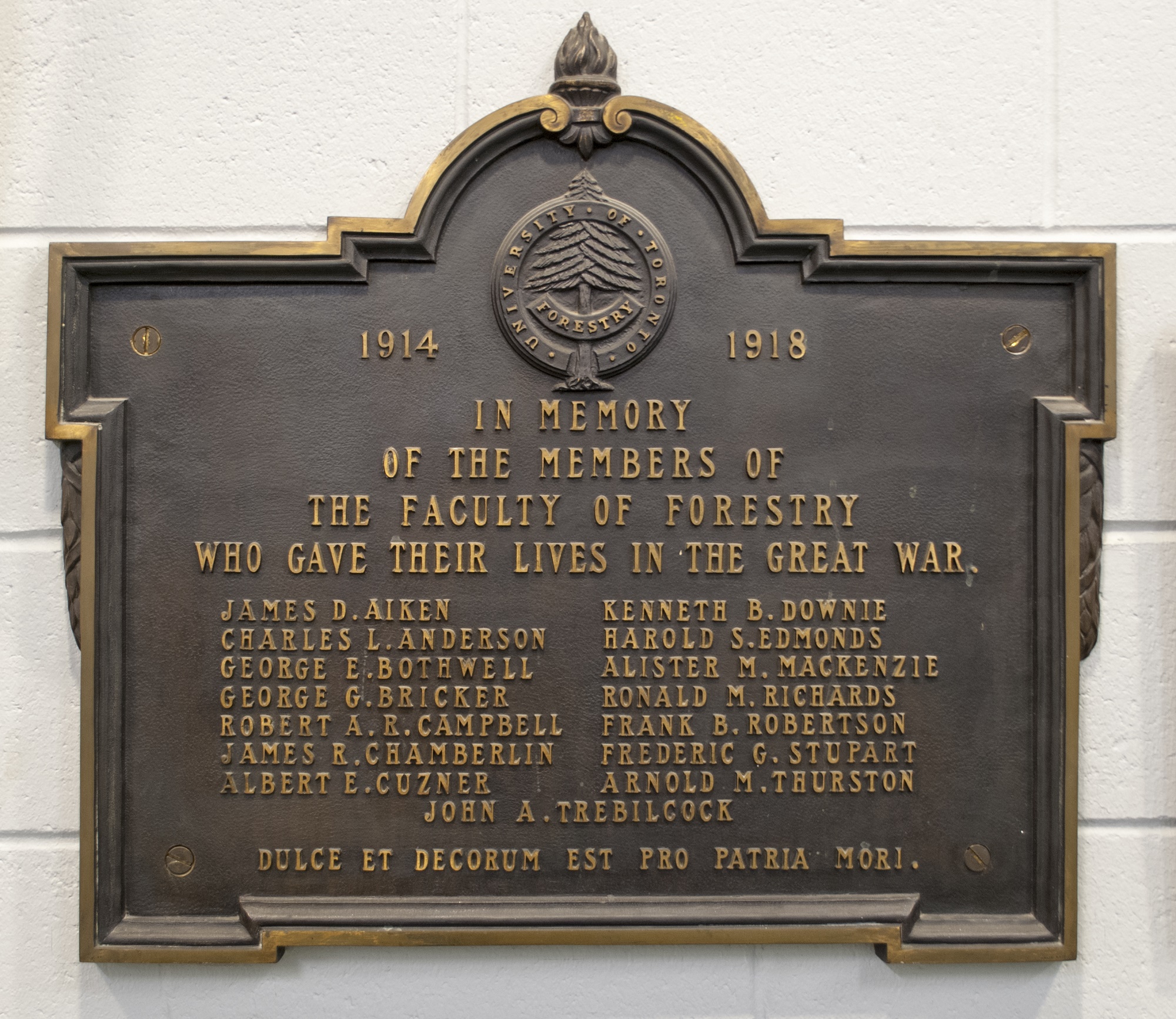 Plaque commémorative de la Première Guerre mondiale de la Faculté de foresterie