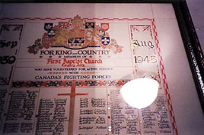 Tableau d'honneur de la Deuxième Guerre mondiale de la Première église baptiste