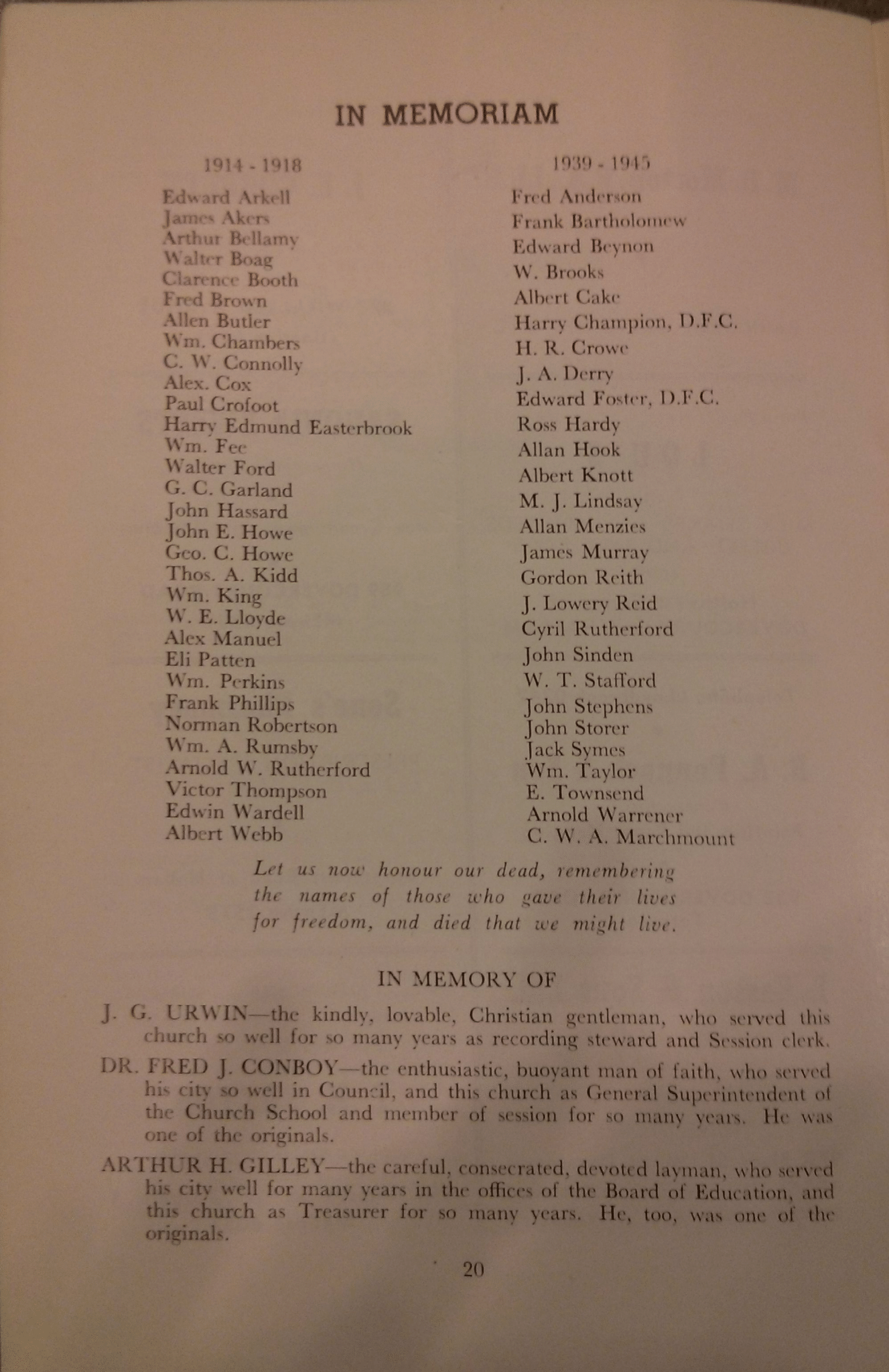 the enthusiastic, buoyant man of faith, who served his city so well in Council, and this church as General Superintendent of the Church School and member of session for so many years. He was one of the originals.