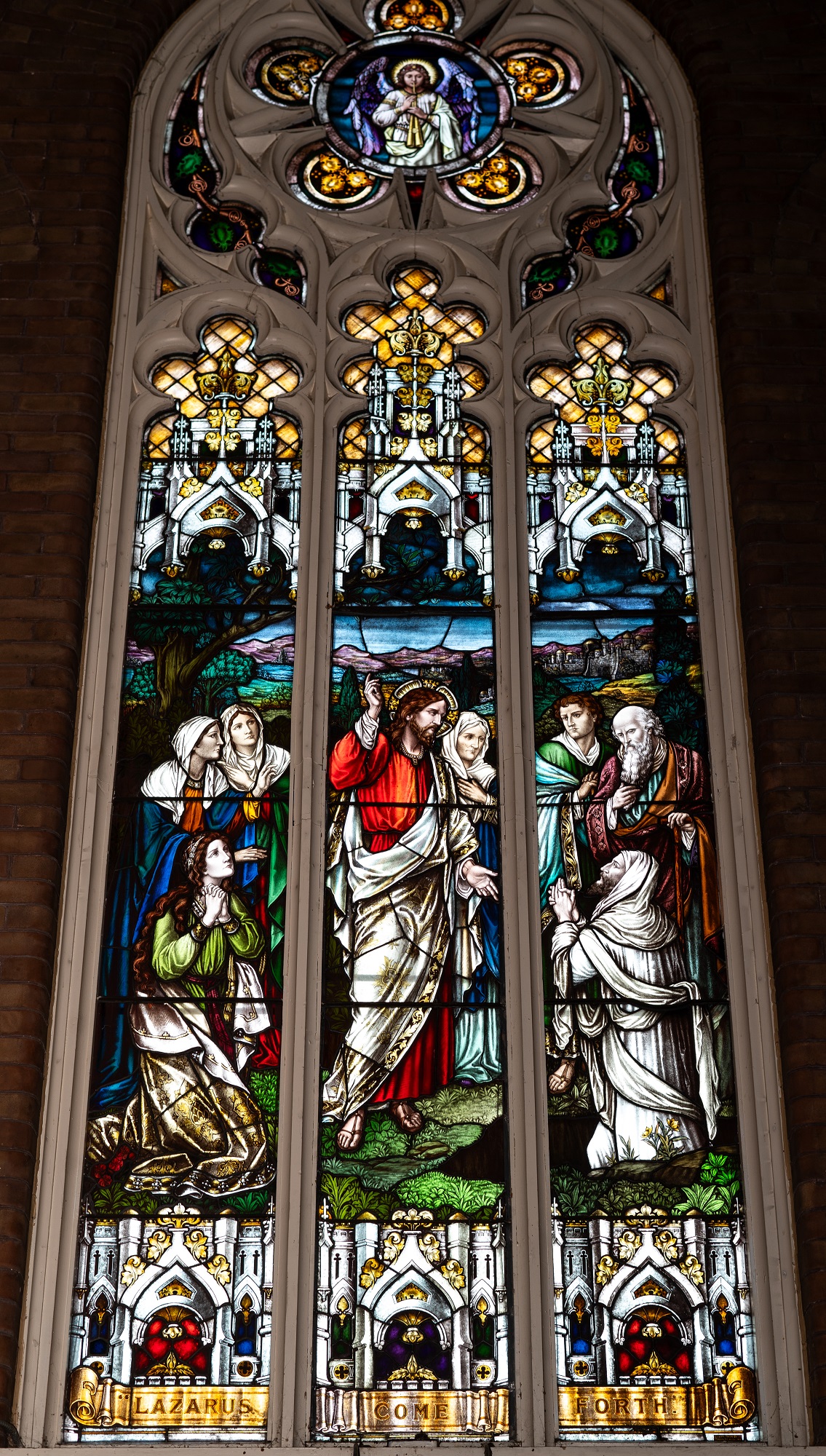 La fenêtre illustrant la Première Guerre mondiale rend hommage aux hommes de l’Église norvégienne St. John the Baptist qui ont donné leur vie pendant la Première Guerre mondiale ainsi qu’au lieutenant Charles Simpson Lennox. La fenêtre a été offerte par les parents du lieutenant Lennox qui ont perdu leur fils au combat, le 24 juillet 1917.