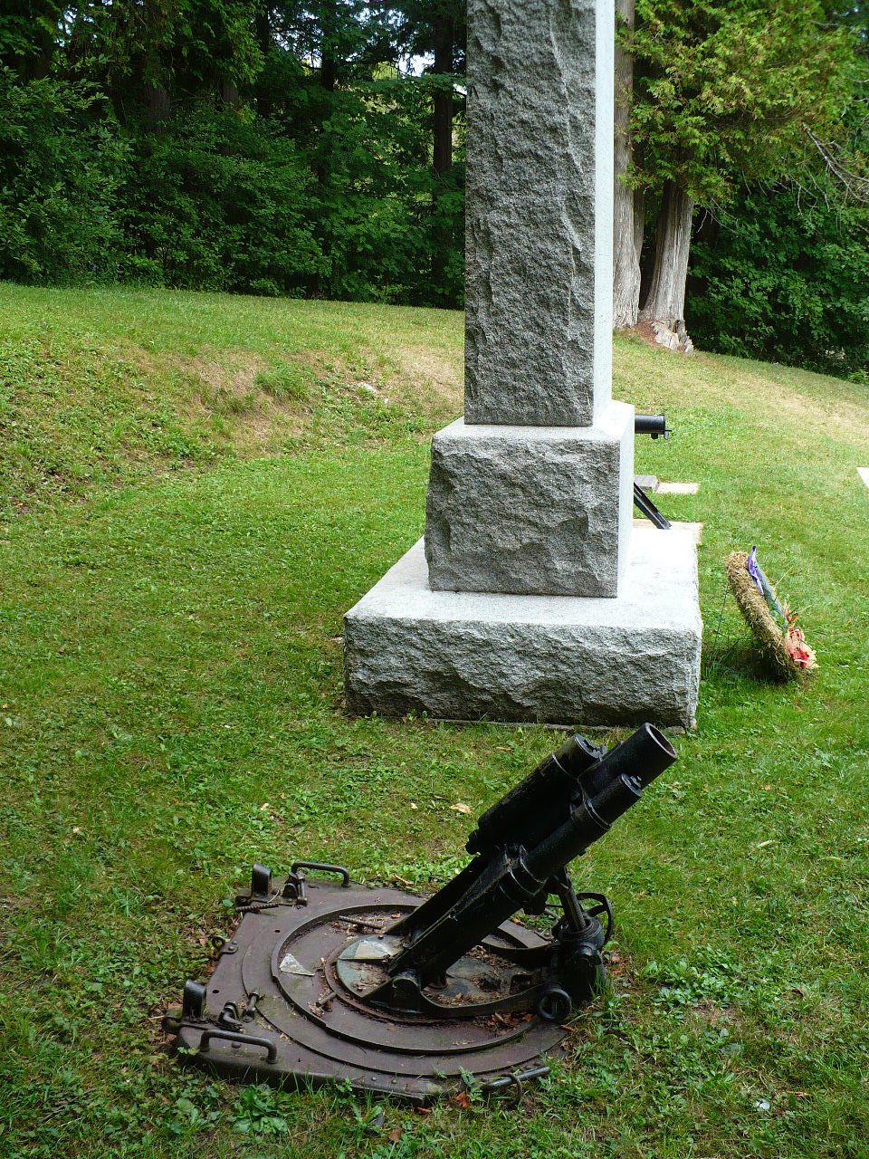 Cette stèle de calcaire fut érigée pour la première fois en l’honneur de ceux qui ont combattu et qui sont morts pendant la Grande Guerre, les noms de ceux qui ont participé à la Seconde Guerre mondiale y ont été inscrits plus tard. Le monument est flanqué d’un mortier de tranchée allemand et d’une mitrailleuse.