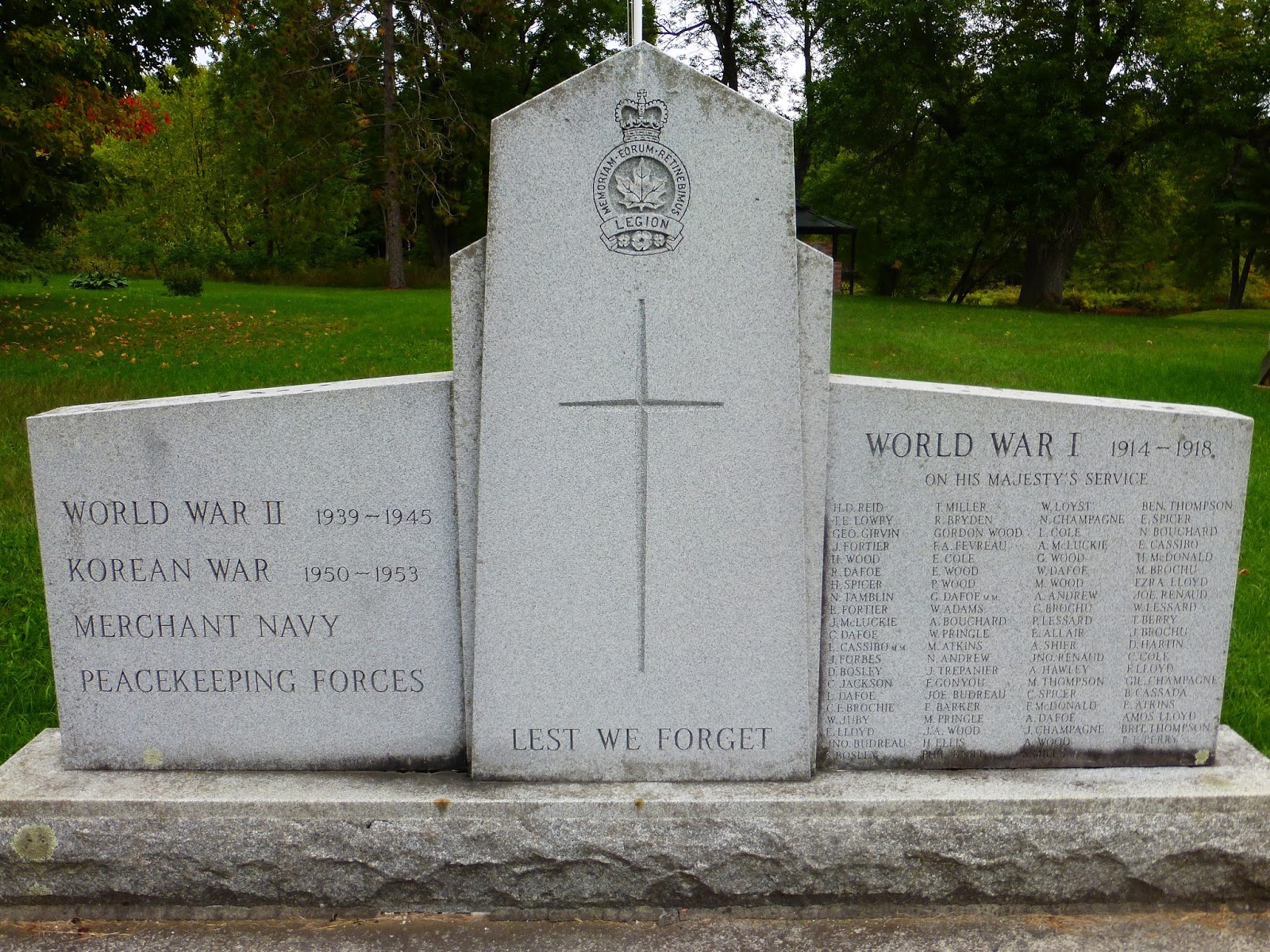 Le mémorial pour tous les anciens militaires de ce petit village est parrainé par la Légion royale canadienne, filiale no 328, à Northbrook. Le mémorial en pierre rend honneur aux deux Guerres mondiales, à la guerre de Corée, à la Marine marchande et aux Casques bleus.