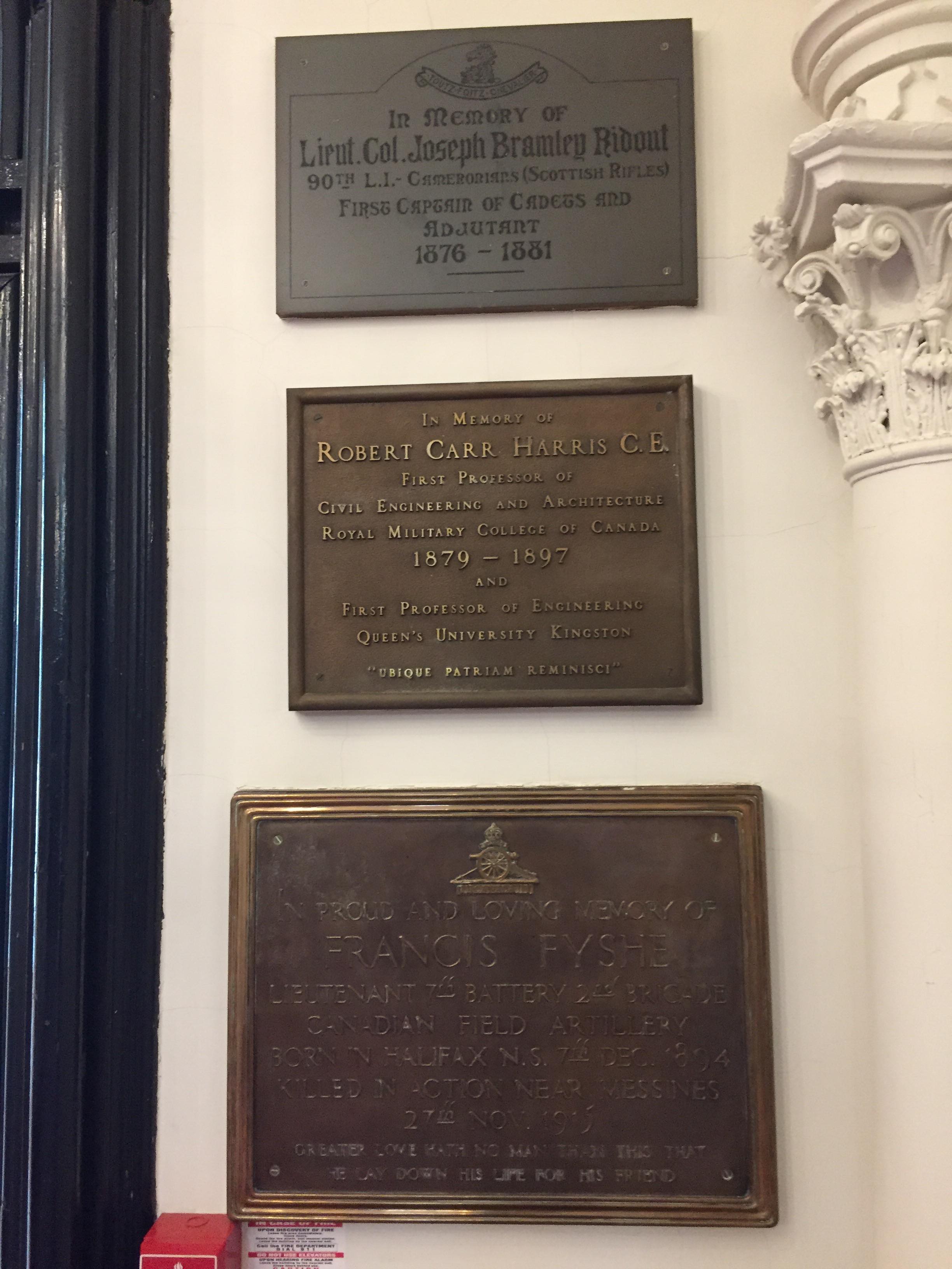 La plaque rend hommage à un ancien cadet du Collège militaire royal, Francis Fyshe.