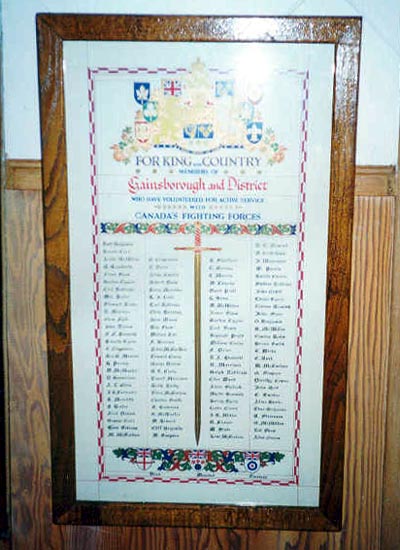 Ce certificat énumère les noms des citoyens de Gainsborough et de son district qui ont servi dans les Forces armées canadiennes durant la Seconde Guerre mondiale.