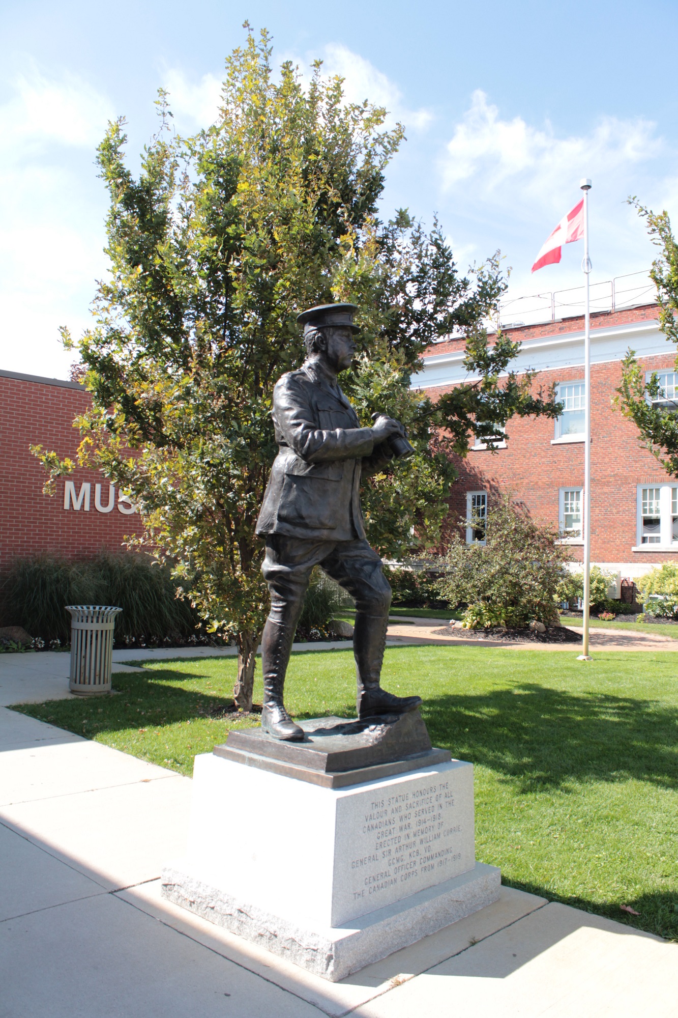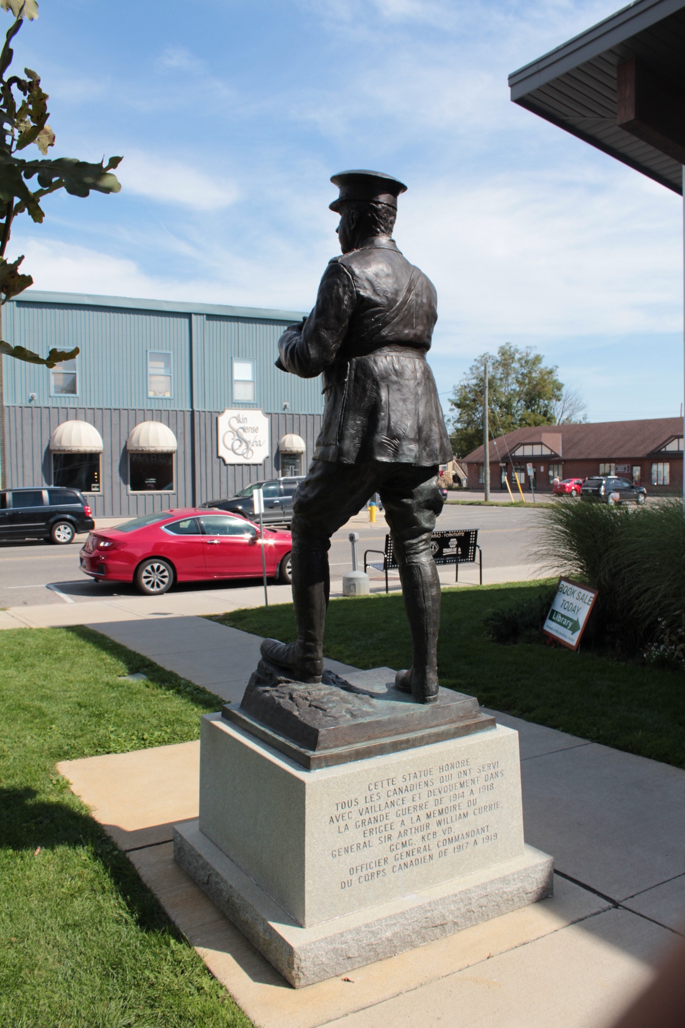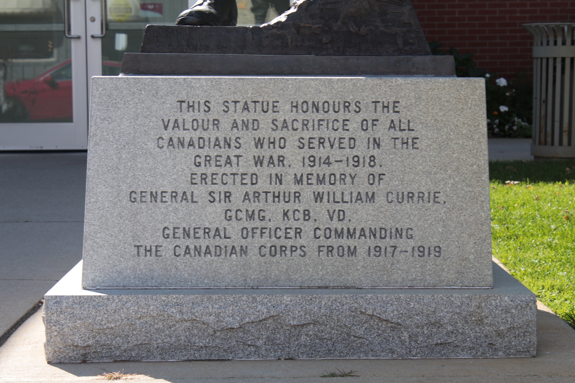 Currie est né tout près de Strathroy et est devenu le premier commandant canadien du Corps canadien lors de la Première Guerre mondiale. Le projet a été entièrement financé grâce à des efforts de collecte de fonds provenant de dons privés, de commandites, de nombreux organismes communautaires, d’Anciens Combattants Canada et de la Ligue des cadets de l’Armée du Canada.