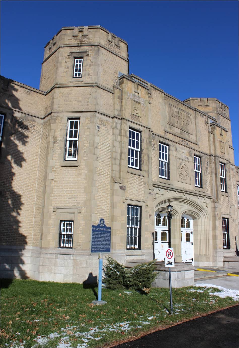 Cette plaque, dévoilée par la Commission des sites archéologiques et historiques de l’Ontario, est dédiée au régiment des Glengarry Light Infantry Fencibles, levé en 1811 1812 et constitué en grande partie de colons écossais établis dans la région. Voir l’inscription sur la plaque pour plus de détails.