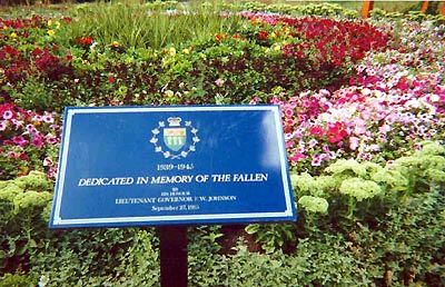 Ce jardin commémoratif a été dédié en hommage aux citoyens de la région morts à la guerre par le lieutenant-gouverneur F.W. Johnson, le 27 septembre 1985.