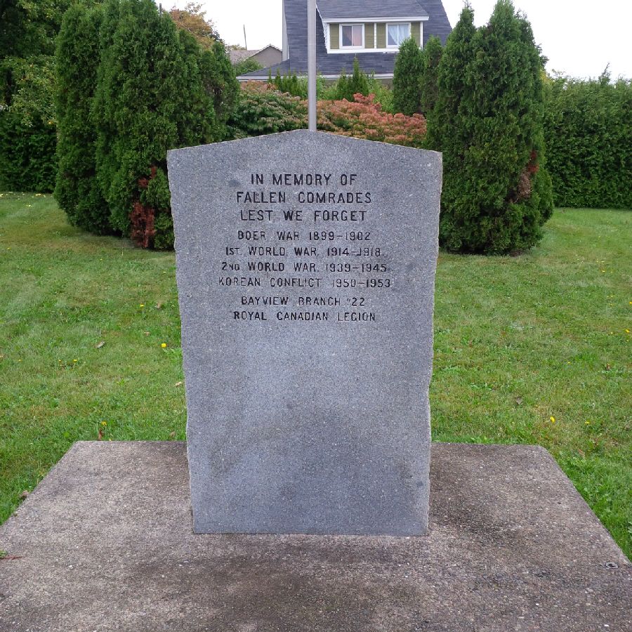 Érigé par la filiale no 32 de la Légion royale canadienne, ce mémorial est dédié aux anciens combattants de la localité et à ceux et celles qui ont donné leur vie lors de la guerre des Boers (sud-africaine), des Première et Seconde Guerres mondiales et de la guerre de Corée.