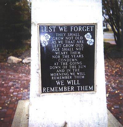 Ce mémorial à ceux et celles qui sont morts à la guerre a été érigé par la Légion royale canadienne.