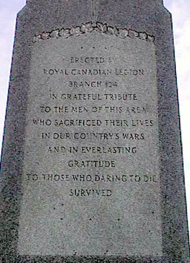 Ce mémorial est dédié aux hommes de la région d’Iona qui se sont battus et à ceux qui sont morts au cours des guerres livrées par le Canada. Il a été érigé par la filiale no 124 de la Légion royale canadienne.