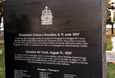 le 11 août 1957. L’appareil, nolisé par les Imperial Veterans of Toronto, effectuait la liaison entre