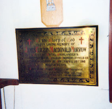 Ce mémorial est dédié à James Curzon MacDonald Morrow, tué au combat pendant la Première Guerre mondiale.