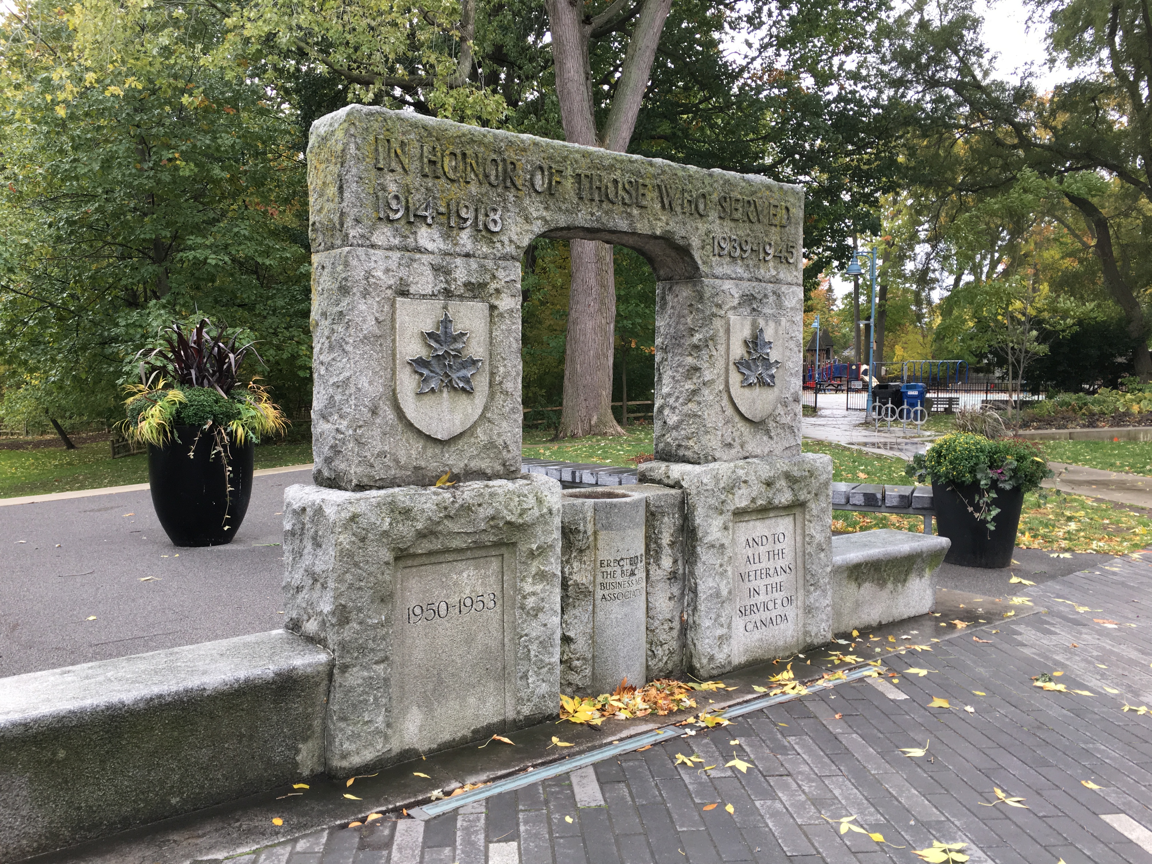 En 1945, la Beaches Businessmen’s Association a offert de faire don d’une fontaine commémorative en souvenir des citoyens de Toronto qui ont donné leur vie pendant les deux guerres mondiales; la fontaine été installée en 1946 à l’entrée de Kew Gardens.