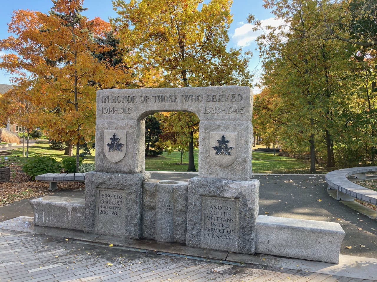 À l’origine, seules les dates de la Première et de la Seconde Guerres mondiales y étaient inscrites. Plus tard, les dates de la guerre de Corée ont été ajoutées. Les dates de la mission du Canada en Afghanistan et de la guerre d’Afrique du Sud ont été inscrites le 27 octobre 2020 par Sanderson Monuments. Les résidents Paul Szabunio, un vétéran de l’armée canadienne, et Peter MacKay, ancien ministre de la Défense, ont demandé à Gene Domagala, historien spécialisé dans le secteur Beaches, et au conseiller municipal Brad Bradford de Beaches-East York de faire ajouter ces dates.