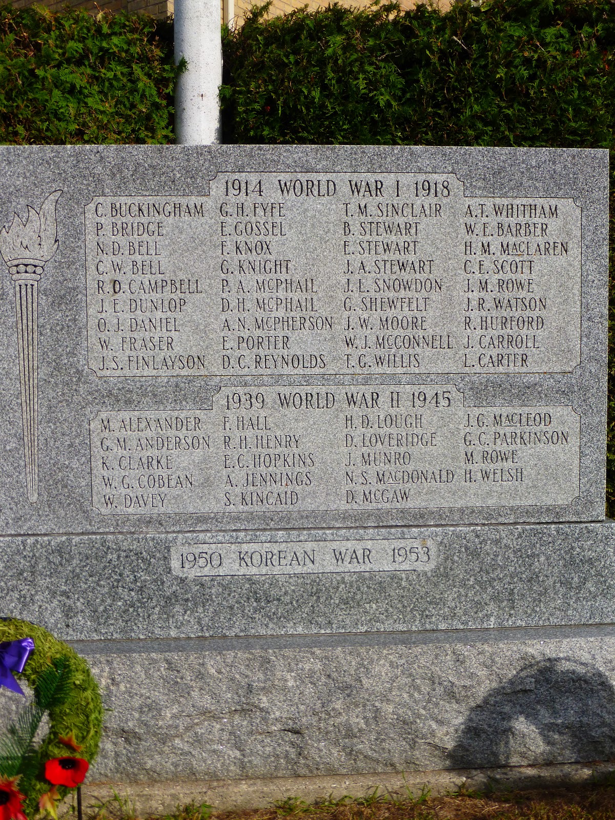 Ce mémorial est dédié à ceux qui ne sont pas revenus des Première et Seconde Guerres mondiales et de la guerre de Corée. Érigé au départ sur l’ancien terrain de la filiale, il a été installé en 1978 sur son emplacement actuel.