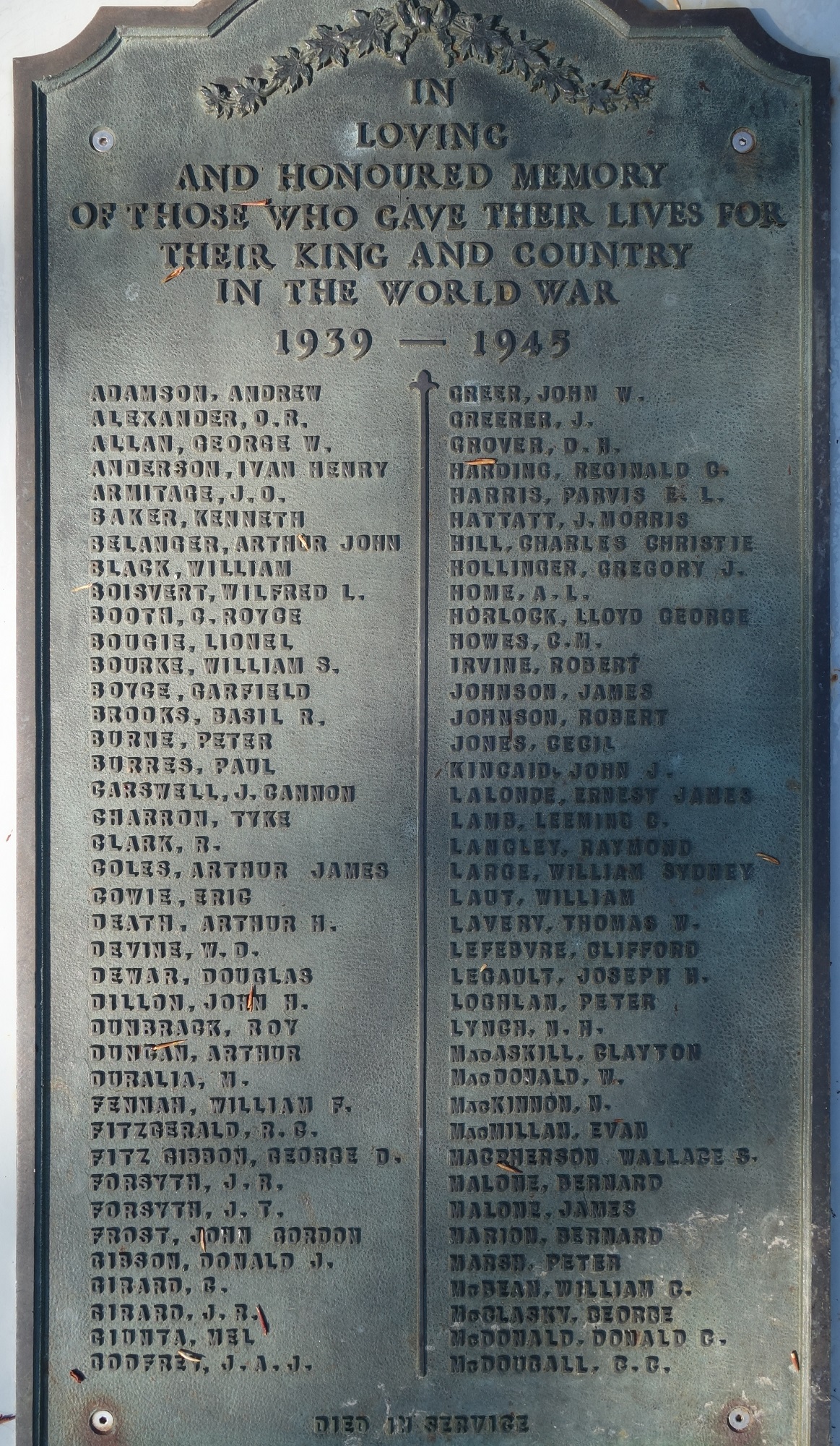 Second World War Honour Roll inscription, Adamson - MacDougall