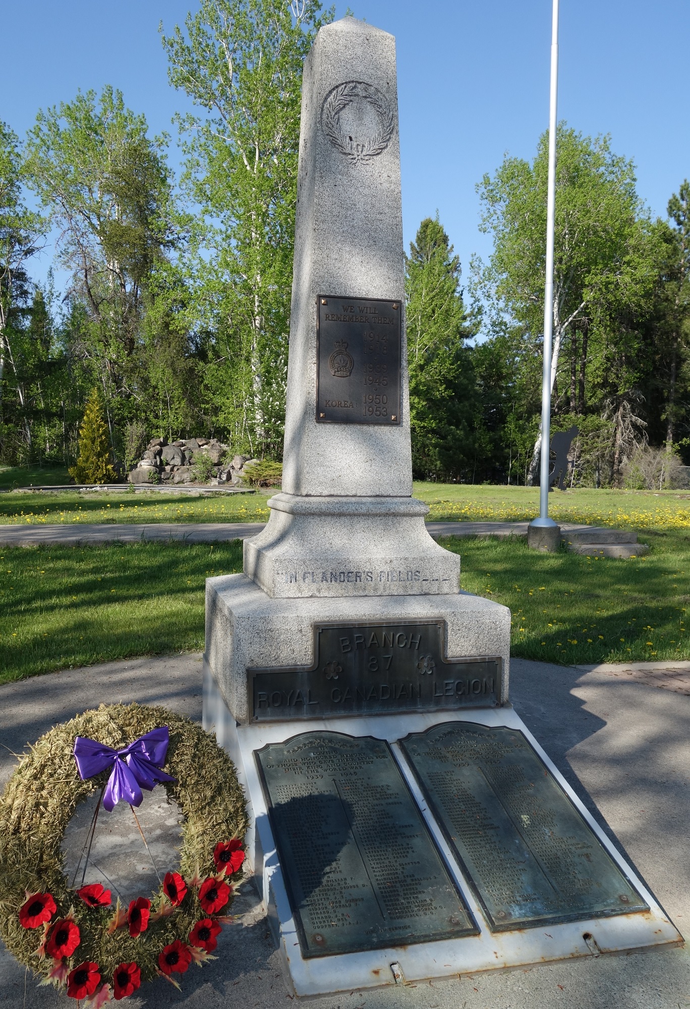 Cet obélisque a été érigé par la ville de Kirkland Lake et la Légion royale canadienne en souvenir des morts de la région durant les Première et Seconde Guerres mondiales et la guerre de Corée.