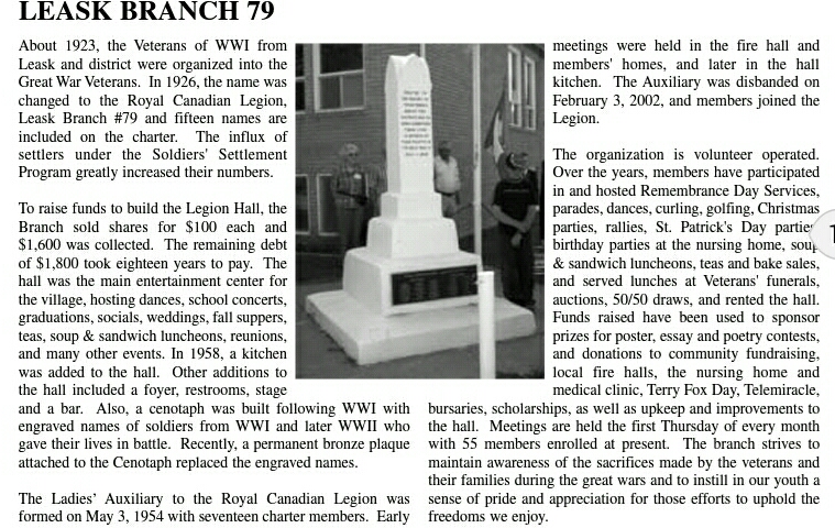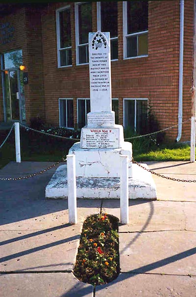 Ce mémorial a été érigé en hommage aux citoyens de la localité morts durant la Première Guerre mondiale. Une plaque en bois et des inscriptions additionnelles ont été ajoutées après la Seconde Guerre mondiale pour honorer ceux de la communauté qui sont morts durant ce conflit.