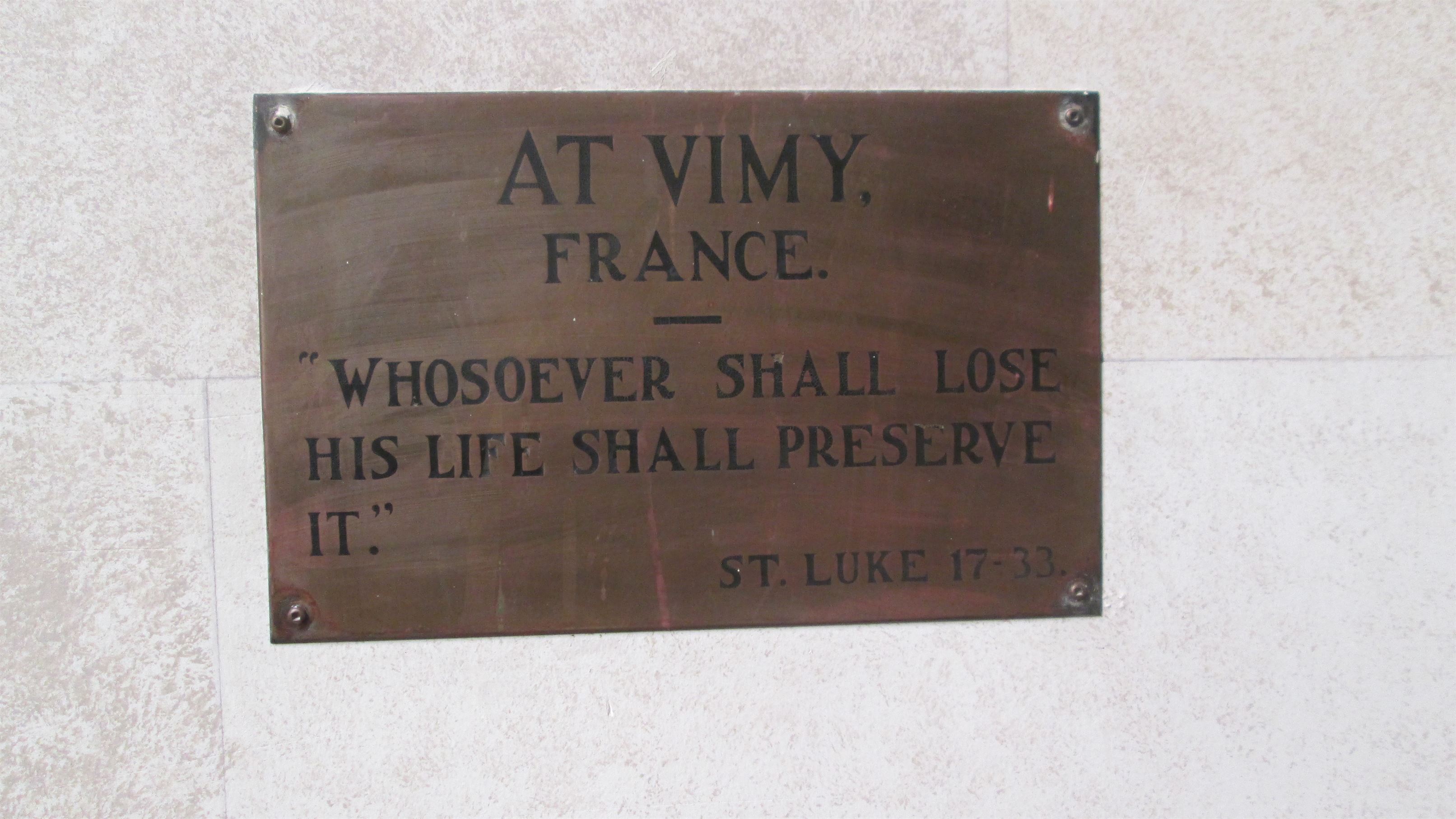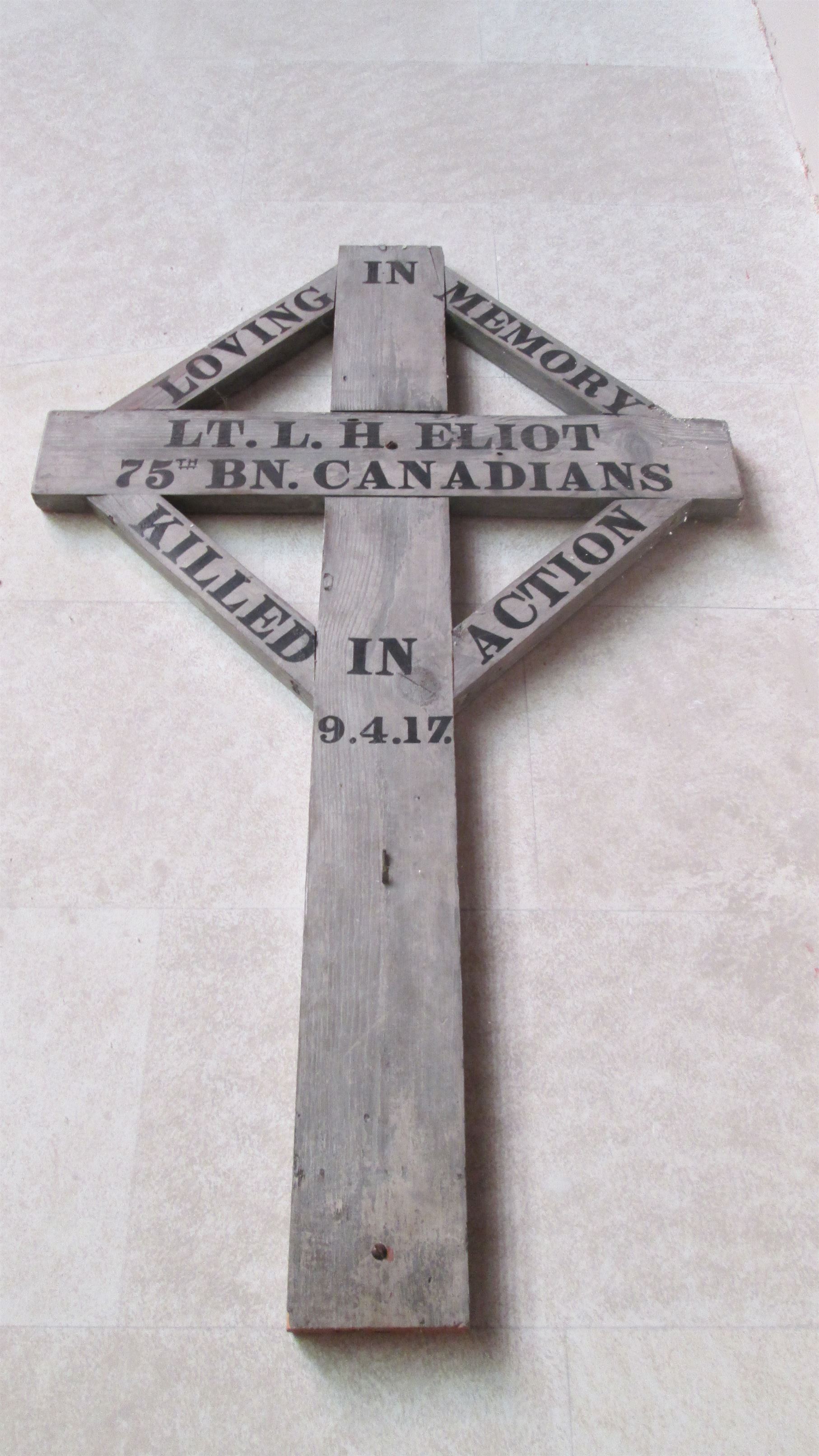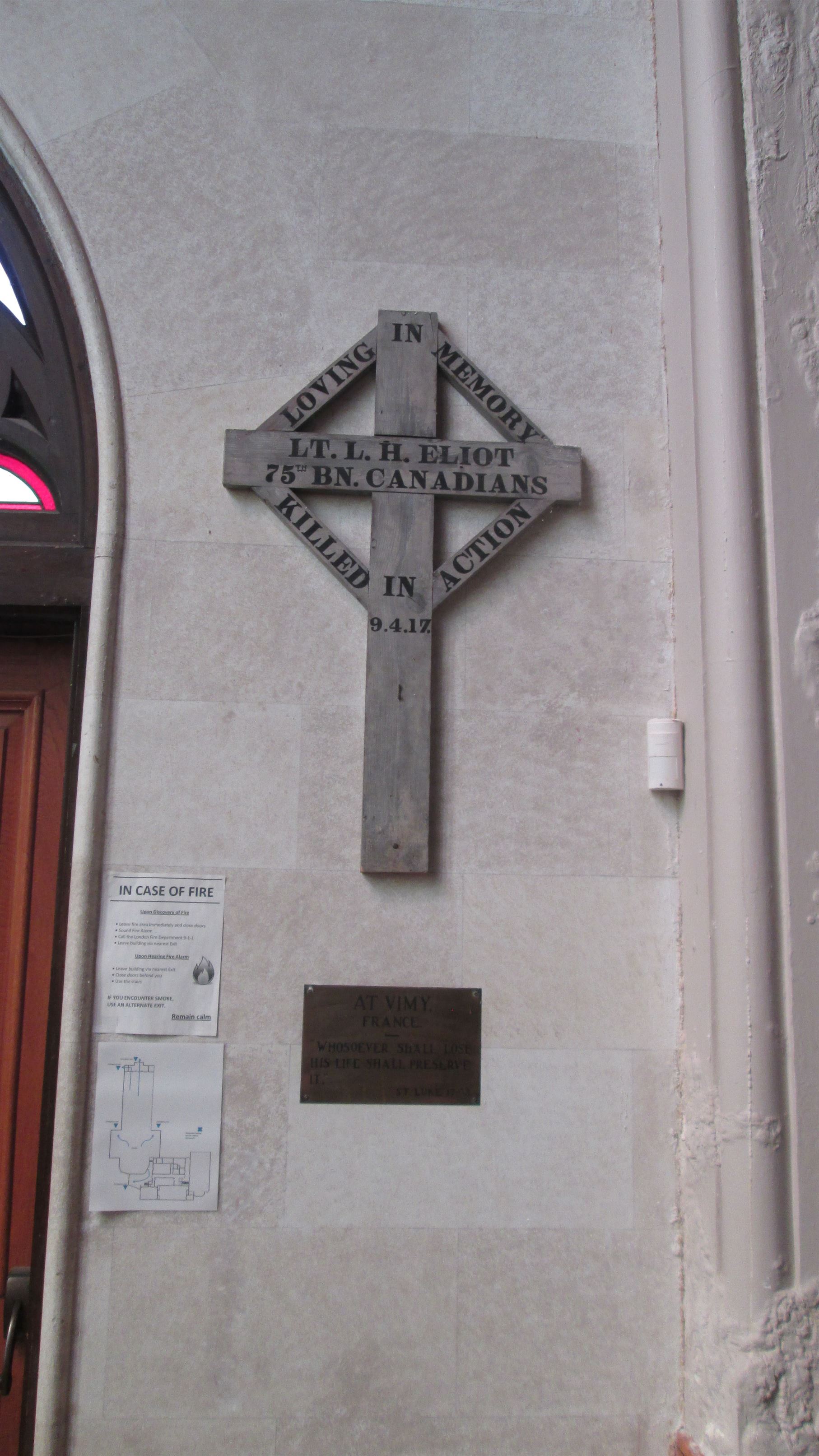 Ce mémorial est dédié à la mémoire du lieutenant Lionel Hyman Eliot, qui a été tué durant la bataille de la crête de Vimy.
