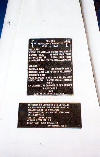 Ce mémorial est dédié aux combattants de la Seconde Guerre mondiale. Il a été érigé par la Chambre de commerce des Jeunes en 1947. Une seconde plaque y a été ajoutée par la Caisse populaire de Louiseville en 1994 afin de commémorer le 50e anniversaire de la libération de la Normandie.