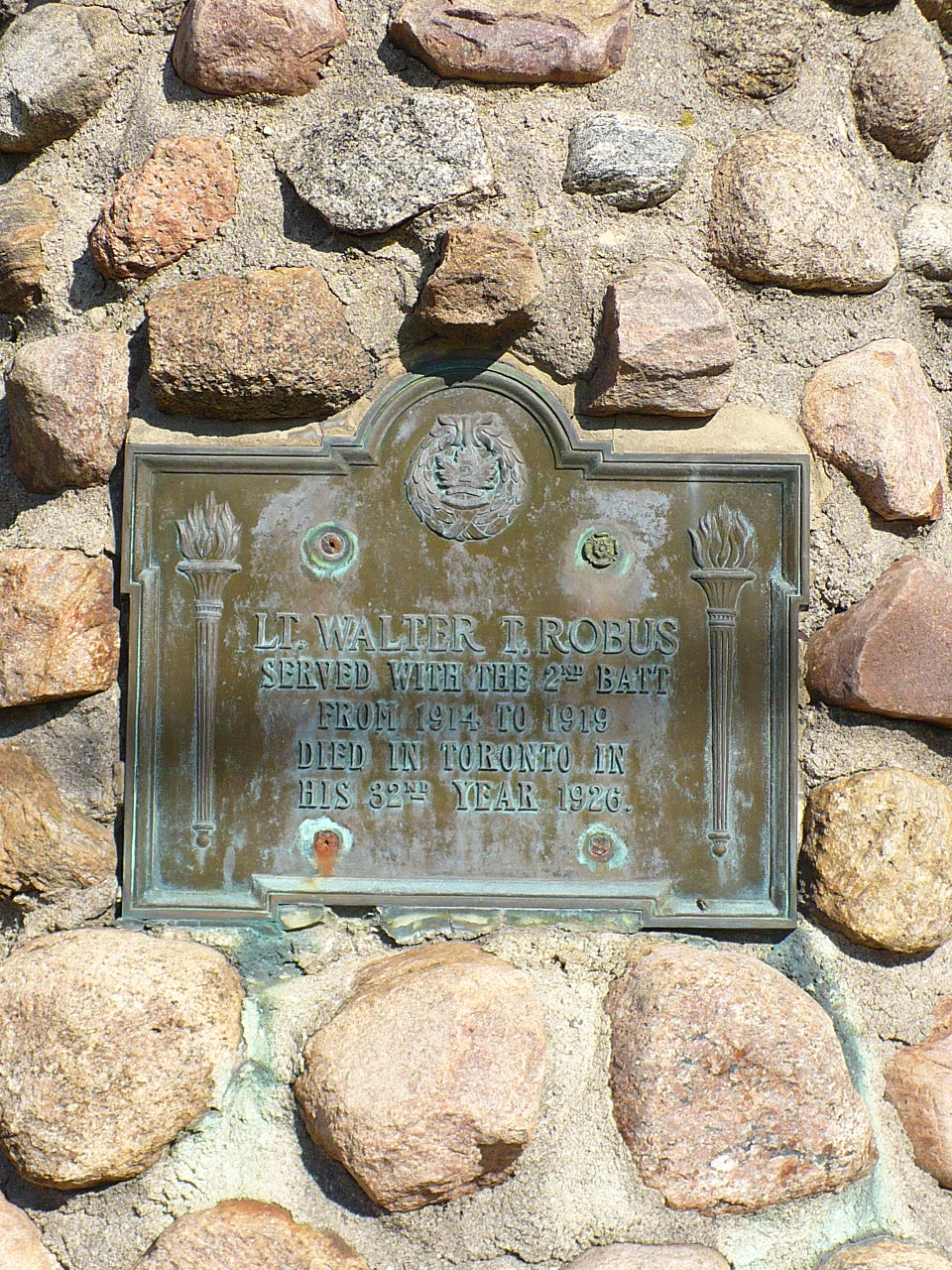 En 1927, Mme Kathleen Davidson, propriétaire fortunée d’un hôtel à Toronto, a acquis un terrain pour le transformer en parc commémoratif en hommage au lieutenant Walter T. Robus (Tommie). Sur le terrain se trouvait une maison abandonnée qui a été démolie et remplacée par deux cairns de pierres assortis de lumières et de plaques. Le parc a été inauguré le 15 août 1927.
