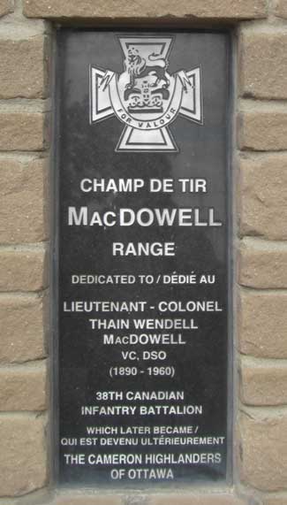 Ce champ de tir commémoratif érigé par le Ministère de la défense nationale fut nommé en l`honneur du Lieutenant-colonel Thain Wendell MacDowell VC, DSO (1890-1960).