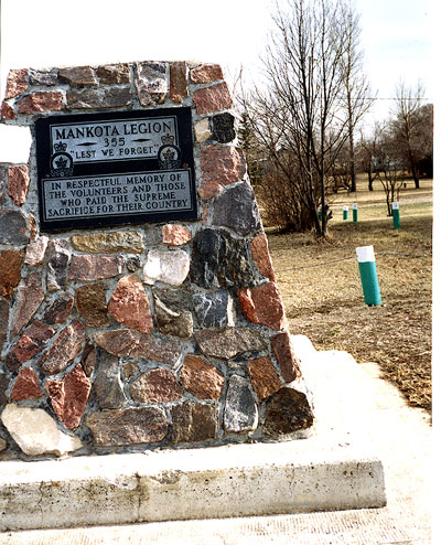 Ce mémorial a été érigé par le Village de Mankota et ses citoyens en 1978. Le tumulus est dédié aux pionniers de Mankota, aux membres de la Légion et aux Lions.