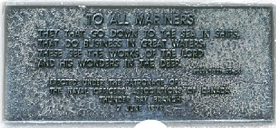 Cette plaque désignait le monument des premiers marins, dont les parties ont été incorporées au nouveau monument commémoratif de l’Anchorage. Ce mémorial fait partie des vestiges de l’Anchorage.