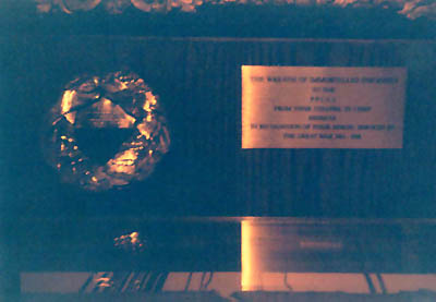 THE WREATH OF IMMORTELLES TO THE PPCLI FROM THEIR COLONEL IN CHIEF PATRICIA IN RECOGNITION OF THEIR HEROIC SERVICES IN THE GREAT WAR 1914-1918