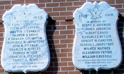 Plaque commémorative de la Deuxième Guerre mondiale à Miramichi (Douglastown)