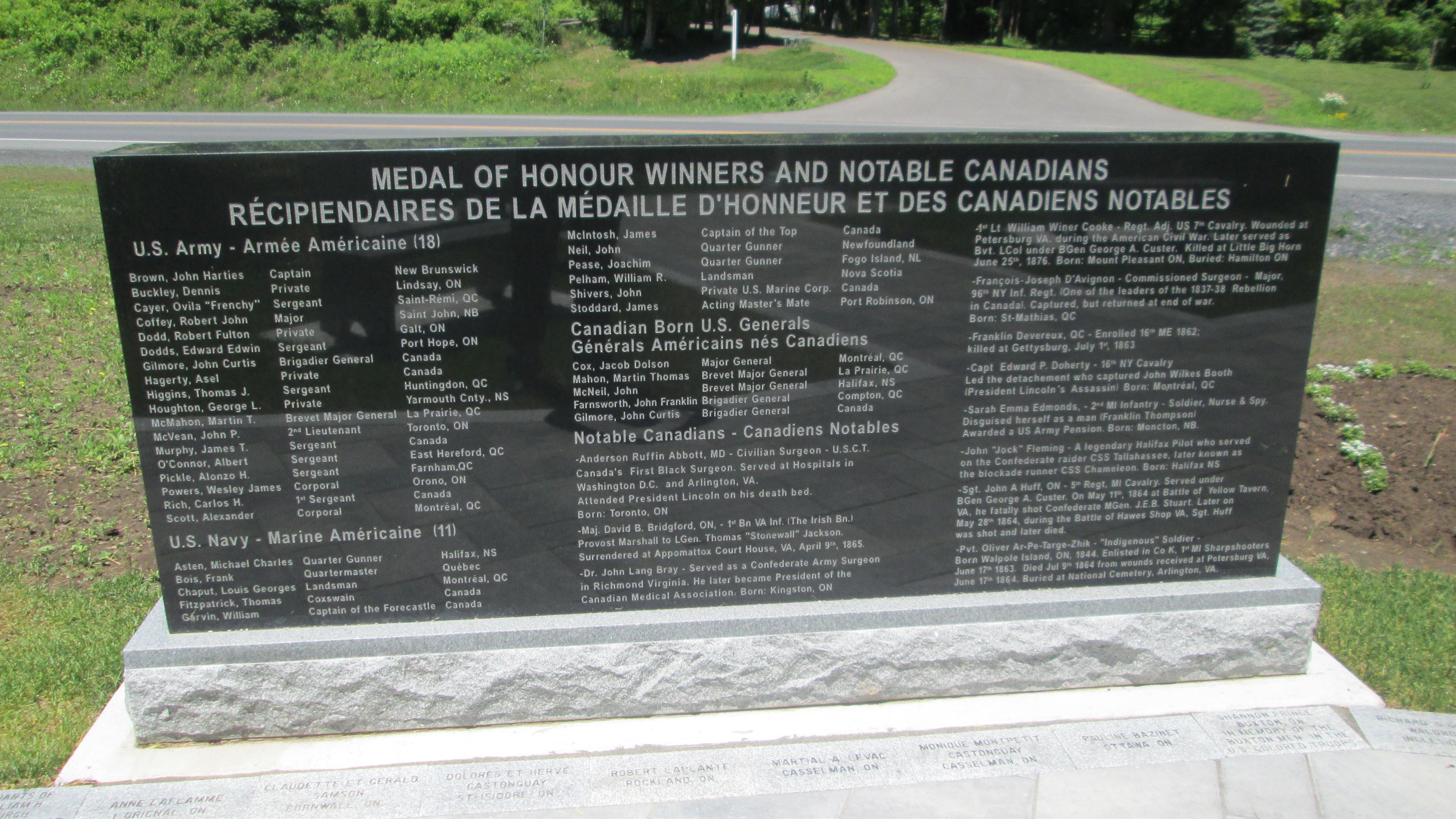 - 1st Lt. William Winer Cooke- Regt Adjt U.S. 7th Cavalry. Wounded at Petersburg, VA during the American Civil War. Later served as Bvt LCol under BGen George A. Custer. Killed at Little Big Horn June 25th, 1876. Born: Mount Pleasant, ON. Buried: Hamilton, ON.