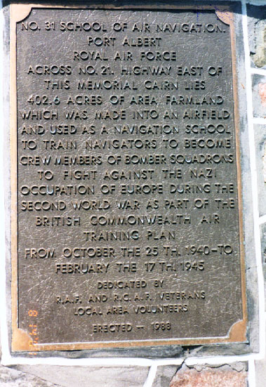 Ce mémorial est dédié aux hommes et aux femmes qui ont suivi leur formation à l’école de navigation aérienne no 31 pendant la Seconde Guerre mondiale. Il a été érigé en 1988 par des anciens combattants de la RAF et de l’ARC, Eugene McGee, la société des loisirs de Port Albert et des bénévoles de la région.