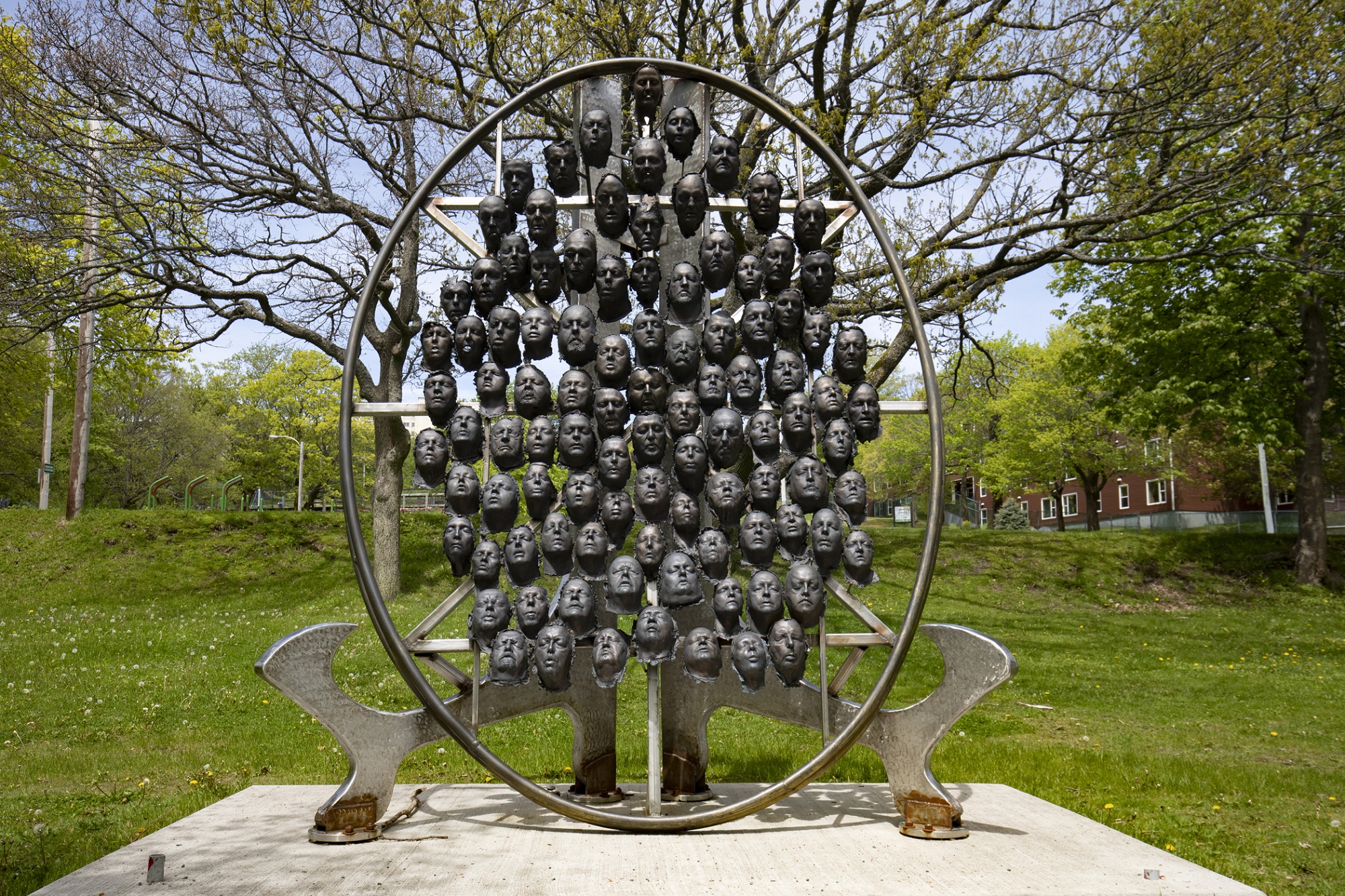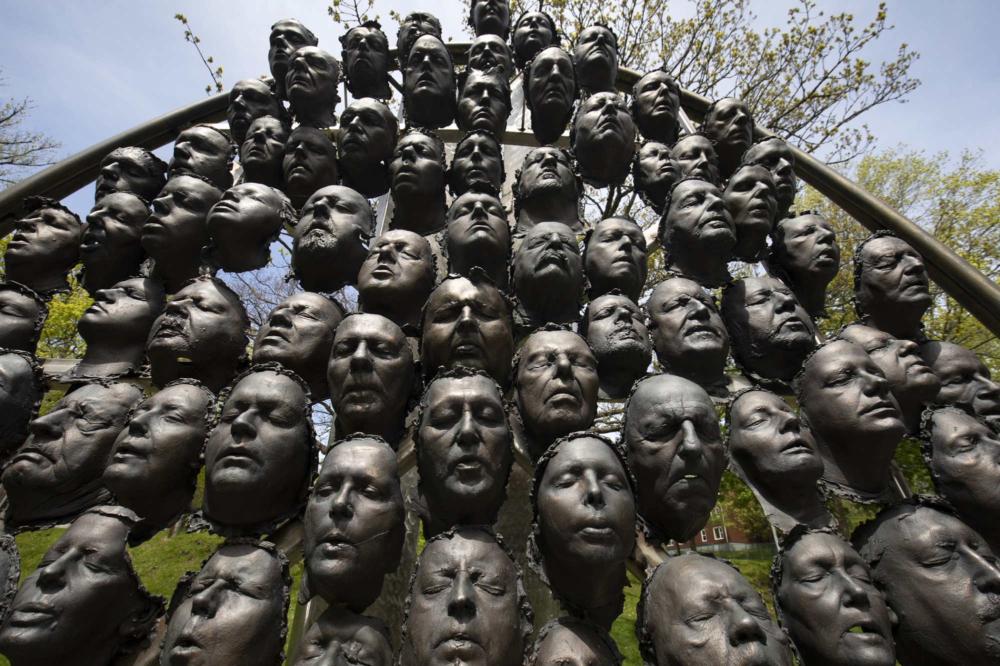 Morgan a ensuite utilisé de la cire de fonderie microcristalline, l’a séchée et l’a réappliquée jusqu’à obtenir une épaisseur d’environ 6,5 mm. Lorsque la cire a durci, l’alginate et le plâtre ont été soigneusement retirés et les visages ont ensuite été nettoyés. Après avoir conçu le moule de chaque volontaire, Morgan a disposé les effigies en bronze, puis a soudé les moulages à un cadre ovale rappelant des portraits de guerre antiques. Le monument mesure plus de trois mètres et demi de haut et pèse environ 2 200 kilogrammes.