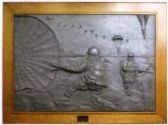 Cette sculpture, « PARA DROP » (Parachutage) est celle d’une zone de saut en hiver. On peut voir un parachutiste se lancer dans les airs à l’avant-plan, d’autres parachutistes descendant les uns après les autres et un autre groupe de parachutistes sautant dans la zone de saut depuis un avion Hercules C?130 qu’on peut remarquer au loin. La sculpture a été dévoilée en mars 2013 et elle est dédiée aux parachutistes et membres actuels et passés du Régiment aéroporté du Canada.