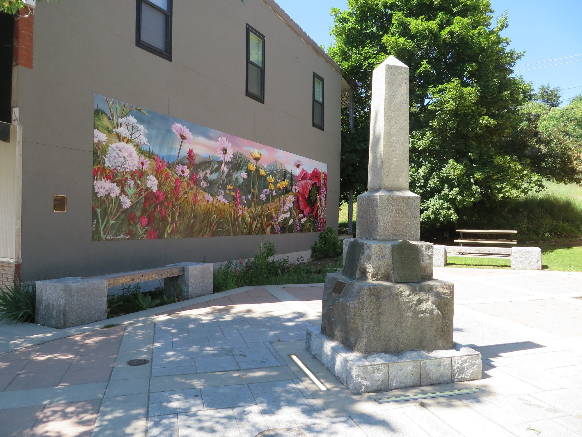 La murale a été peinte sur des panneaux de 4 pi x 8 pi par l’artiste local Tyler Toews et fixée au mur extérieur de l’édifice J.-Van-der-Ham, près du cénotaphe. Elle représente des fleurs sauvages de la région de West Kootenay, symbolisant l’engagement du Canada en faveur de la paix et commémorant également les habitants de la localité qui ont servi pendant la Première Guerre mondiale, la Seconde Guerre mondiale et la guerre de Corée. La murale a été achevée à temps pour le service du jour du Souvenir de 2019.