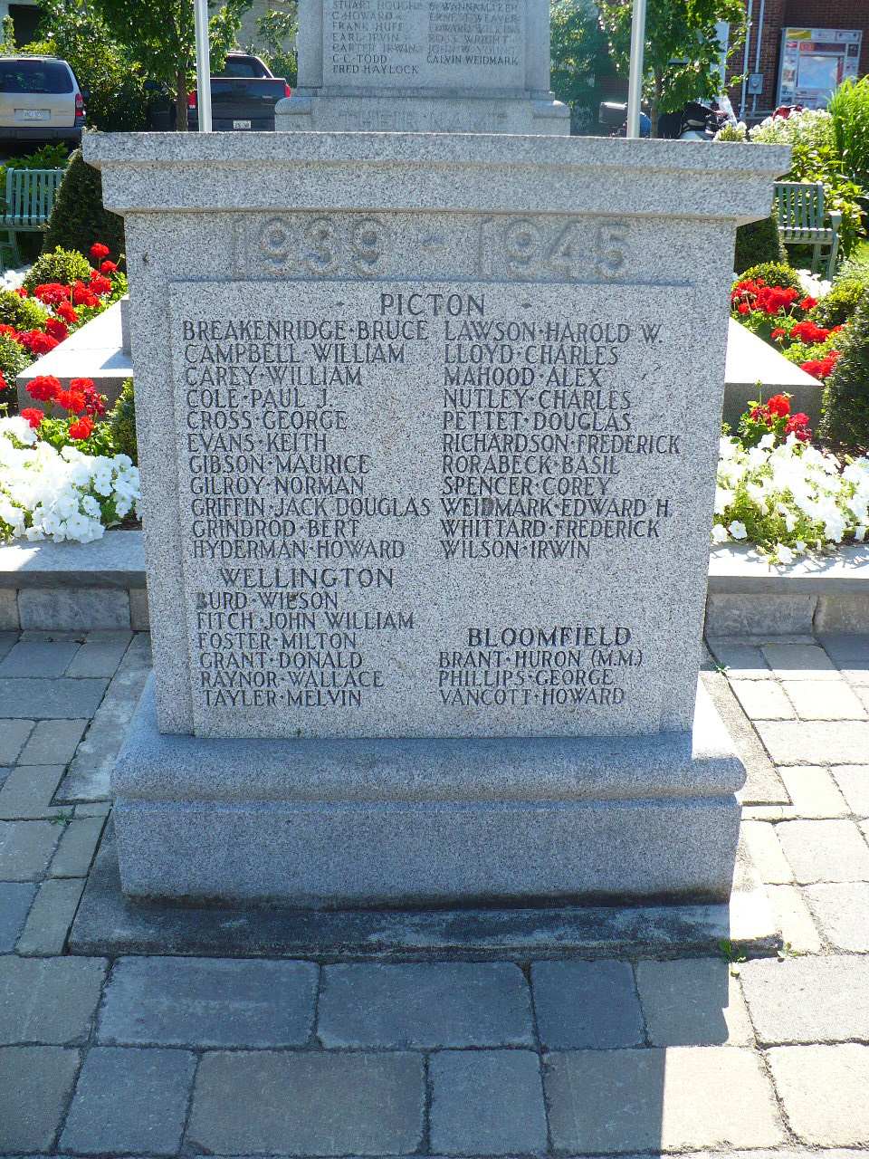 Les travaux d’érection du monument se sont terminés le lundi 20 septembre 1920. Le monument a été inauguré le lendemain, le mardi 21 septembre 1920. Le monument commémoratif de guerre de Picton est dédié à la mémoire des anciens combattants tués pendant la Première Guerre mondiale. En novembre 1956, il a été dédié aux morts de la Seconde Guerre mondiale au cours d’une cérémonie marquée par l’ajout d’un autel. Un hommage aux anciens combattants de la guerre de Corée y a été ajouté plus tard.