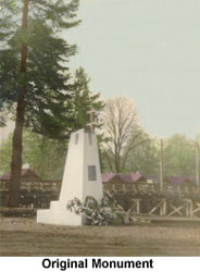 Ce mémorial a été érigé par la filiale no 293 de la Légion royale canadienne en souvenir des Première et Seconde Guerres mondiales et de la guerre de Corée. La filiale no 293 a été créée en 1942, et l’édifice a été inauguré officiellement en avril 1947. Le jour de l’Armistice, un mât avait été érigé et un cénotaphe avait été construit par d’anciens membres, dont R. Gilliland; le stuc avait été posé par Frank Lockwood, président pendant quatre ans. Ce cénotaphe a été le théâtre des cérémonies du jour du Souvenir pendant des années, jusqu’à ce que le terrain sur lequel il se trouvait soit requis pour d’autres usages. Un nouveau monument a cependant été érigé en 1989 près de l’édifice de la Légion. Il est fait de pierres provenant d’une montagne de la région, en surplomb du lac Sproat. La majeure partie du travail a été fait par des bénévoles, et la filiale n’a dû assumer qu’un coût de 1 180 $.