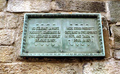 Ici s'élevait la porte Prescott, construite en 1797, réédifiée en 1823 et démolie en 1871.