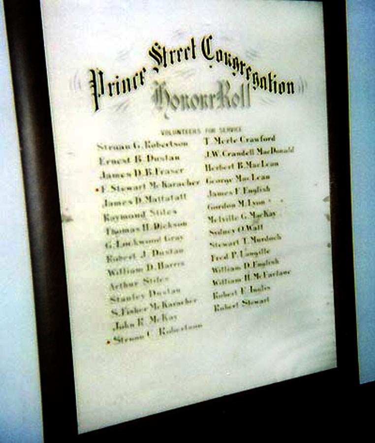 Ces certificats dressent la liste des noms des membres de la congrégation de Prince Street qui ont servi durant la Première Guerre mondiale.