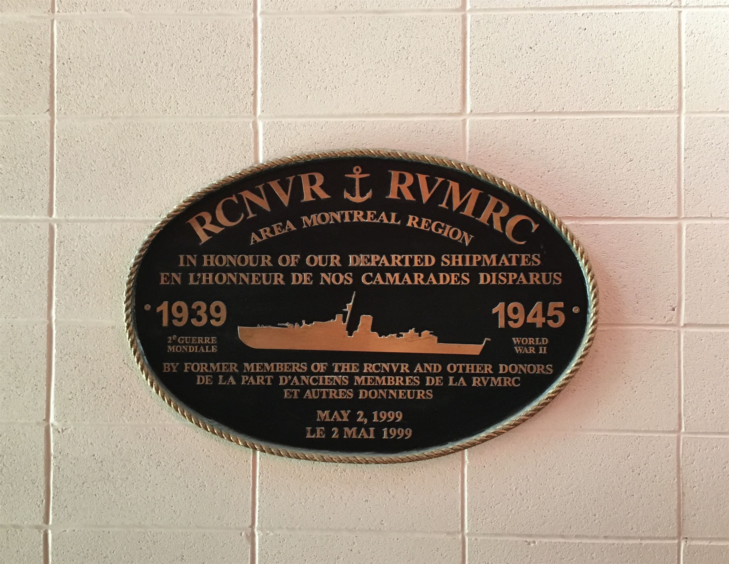 Plaque sur un mur intérieur du NCSM DONNACONA. En métal. Réserve des volontaires de la Marine royale du Canada (RVMRC)