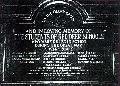 Ce mémorial est dédié aux étudiants des écoles de Red Deer qui ont été tués au combat pendant la Première Guerre mondiale. Il a été donné par la section Admiral Sir Christopher Craddock de l’I.O.D.E., de Red Deer (Alberta).