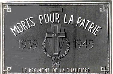 Plaque commémorative des sacrifices de la Deuxième Guerre mondiale du Régiment de Lévila Chaudière