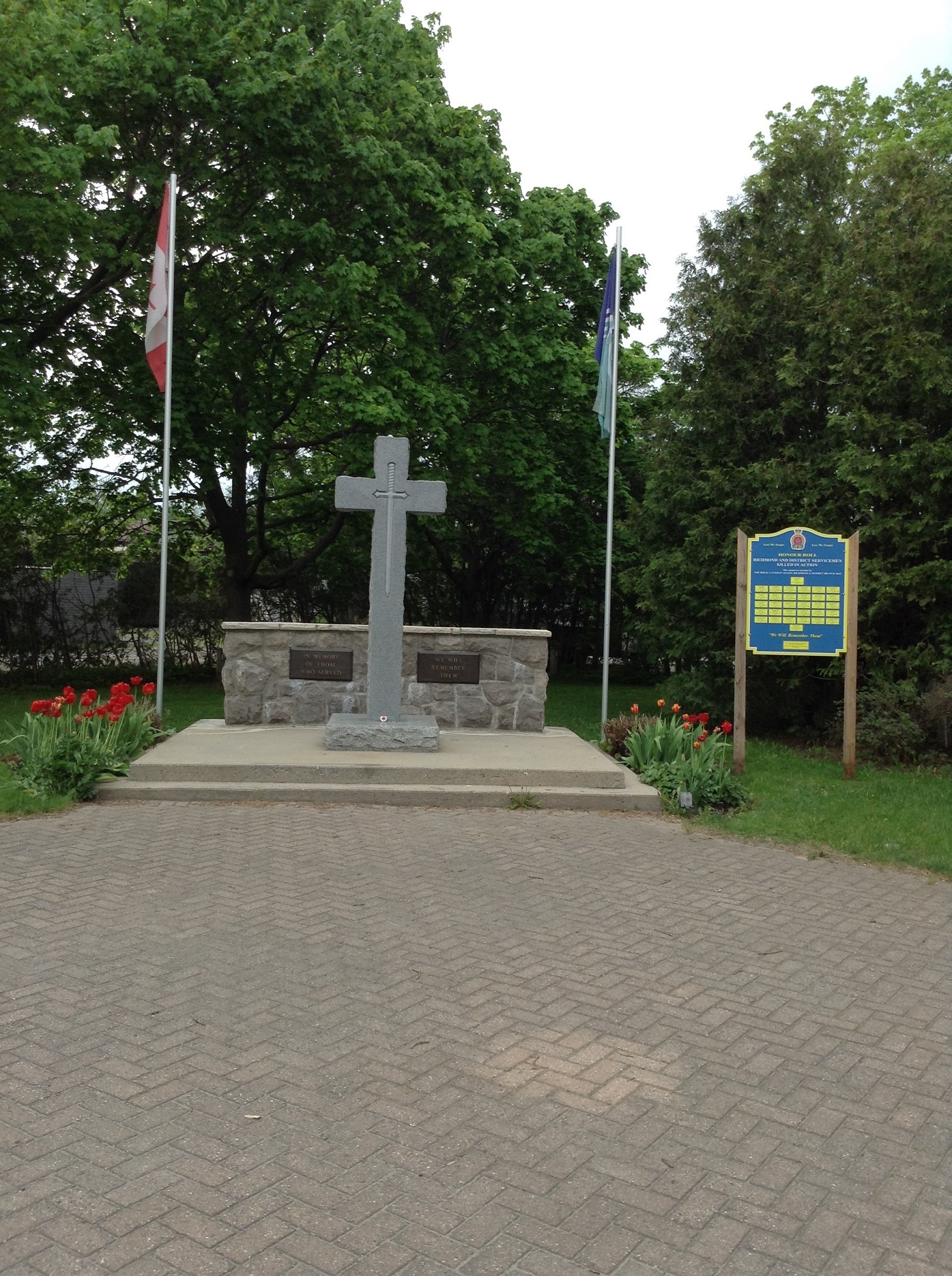 Le cénotaphe du parc Memorial de Richmond est dédié à tous ceux qui ont servi leur patrie. Le cénotaphe se compose d’une croix de 8 pieds en granit de Barre sombre poli provenant du Québec, appuyée sur une base en pierres grises de Stanstead. La croix est illuminée toute l’année par des projecteurs. Derrière la croix se trouve une pierre de 3 pieds contenant deux plaques de bronze.