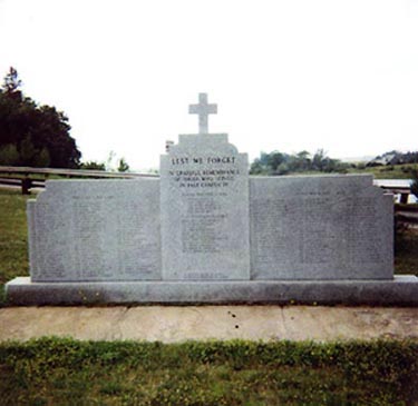 Surmonté d’une croix sculptée, ce mur est dédié à la mémoire des vétérans de la communauté qui ont servi durant les Première et Seconde Guerres mondiales, la guerre de Corée et dans les missions de la Paix des Nations-Unies.