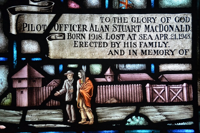 Érigée par la famille du sous-lieutenant d'aviation Allen Stuart MacDonald né en 1918 et qui périt en mer en avril 1945 et à la mémoire du capitaine d’aviation Hugh Munro Hope né en 1918, tué le 22 février 1945 et à la chère mémoire de leurs camarades tombés au combat.