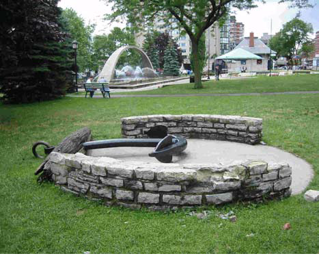 Ancre commémorative de la Marine royale canadienne et de la marine marchande et plaque sur base de pierre.