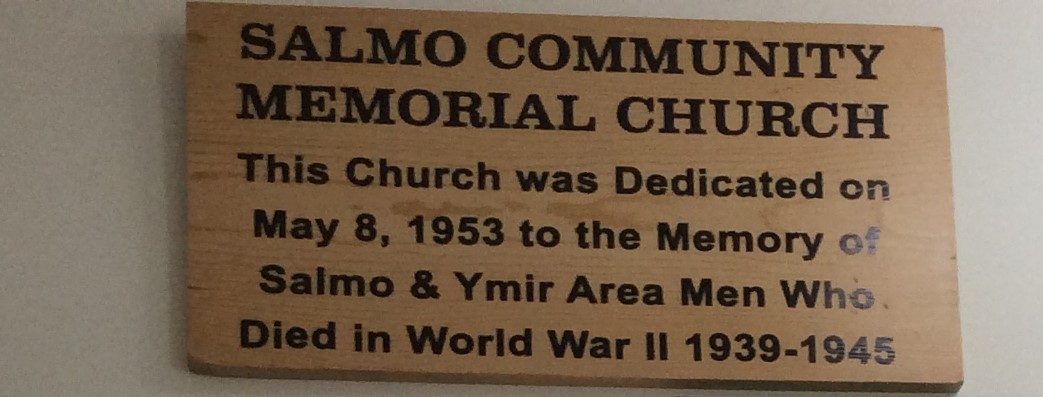L'église Salmo Community Memorial a été construite en 1952. La construction a commencé à l’été 1949 et a été achevée pour Noël 1952. C’est la société Salmo Ladies’ Aid qui a lancé une campagne et commencé à recueillir des fonds dès 1937.